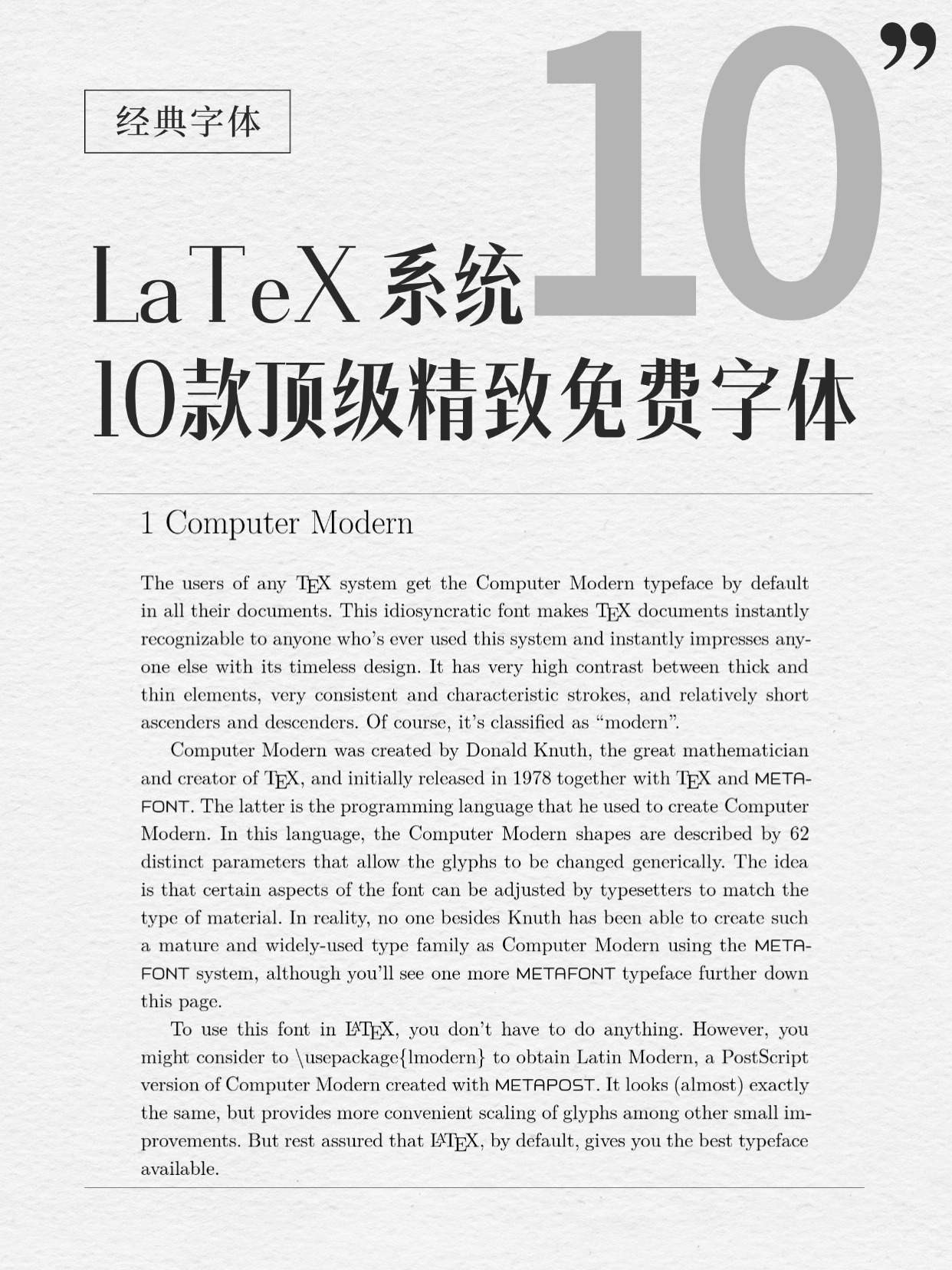十款精选的 LaTeX 精美字体-全免费,不用 cmr 就盲选这些字体吧